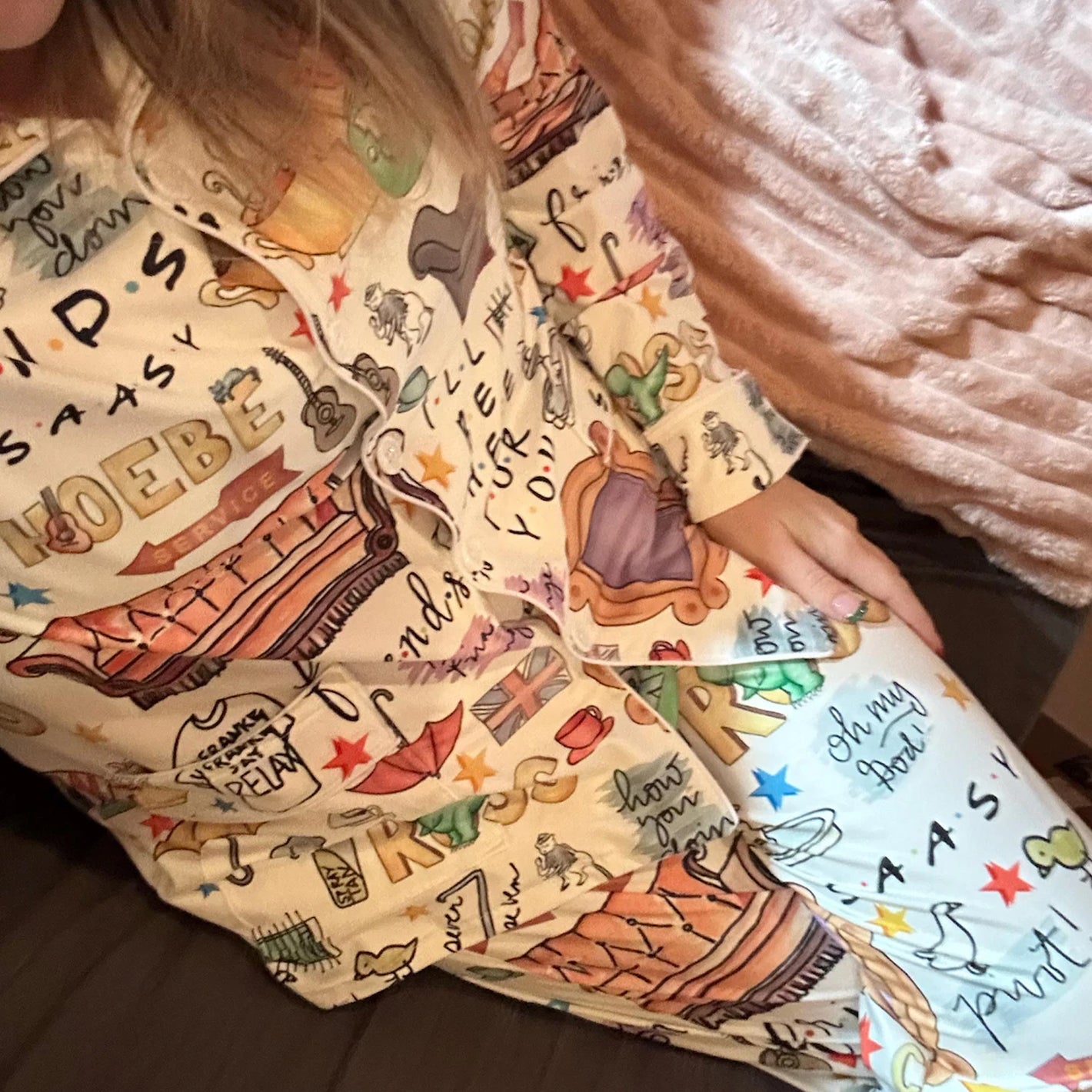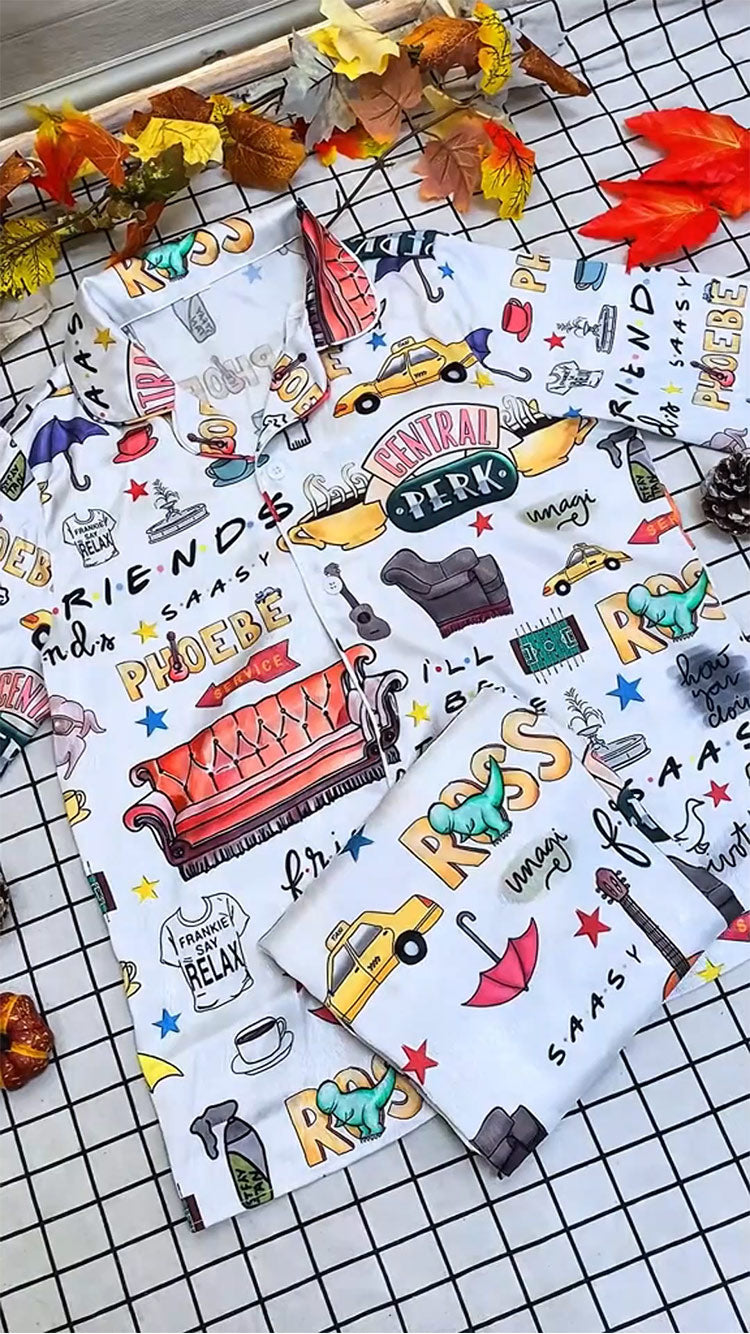 Bring your family together in comfort and style with the Friends Series Family Pajama Set by CozyPerks™. Inspired by the iconic Friends series, these matching satin pajamas are perfect for cozy nights and fun mornings in coordinated looks.